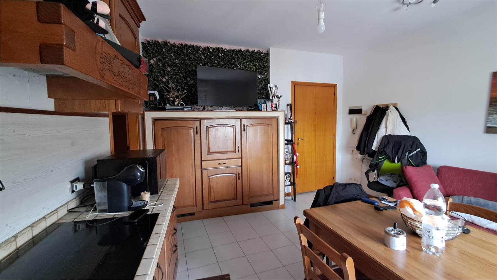 Zona Giorno: Ingresso su un accogliente soggiorno con angolo cottura, ideale per momenti di relax.