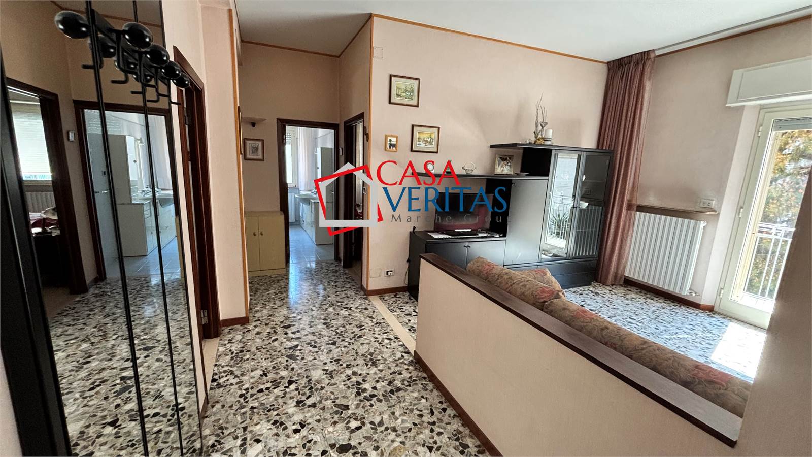 In zona semicentrale di Falconara Marittima, precisamente in Via Zambelli, proponiamo in vendita appartamento al terzo piano con ascensore, di circa 90 mq utili (105 mq commerciali) caratterizzato da ambienti spaziosi e ben distribuiti.La soluzione è composta da: ingresso su ampio e luminoso salone con accesso al balcone, cucina abitabile con zona tinello/pranzo e cucinino separato e secondo balcone, due camere matrimoniali, bagno con doccia